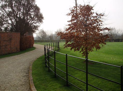 Most Estate fencing is painted black but we can use any colour on the RAL paint chart and we have used many colours over the years and would be happy to discuss and advise. In any case, the steel bars are shot blasted and treated with an anti-rust primer before it arrives on site. We then re-prime after welding and spray paint the fence 2 topcoats on site once fitted. Whilst this provides very good anti rust protection please note that paintwork on both wrought iron and mild steel Estate fencing requires maintenance every few years.